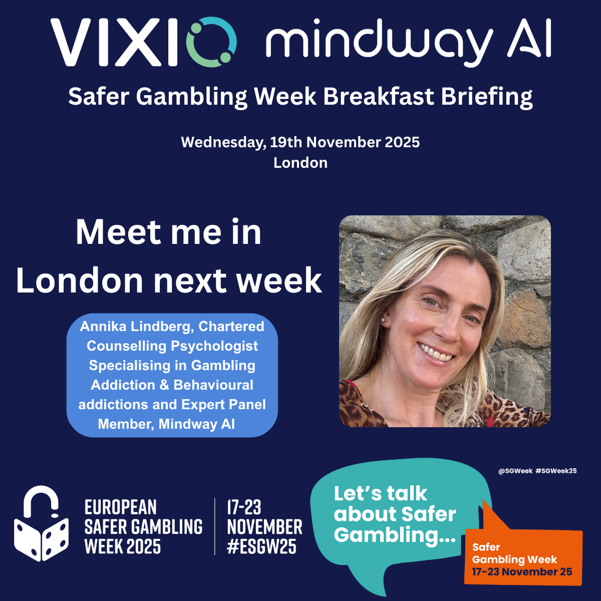 Excited to be joining a panel discussion with Niamh Gallagher Paul Buck and Christina Thakor-Rankin at the Vixio & Mindway AI Safer Gambling Week Breakfast Briefing in the Law Society Hall in London next week Wednesday 19th Nov.